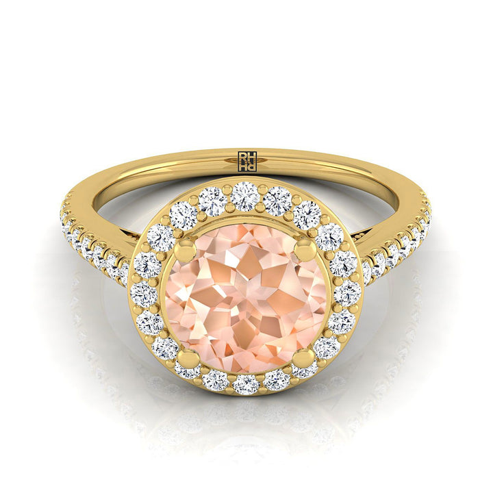 แหวนหมั้นเพชรแกลเลอรีลับแบบฝรั่งเศสประดับมอร์แกไนต์ทรงกลมเจียระไนแบบบริลเลียนต์สีเหลืองทอง 14K - 3/8ctw