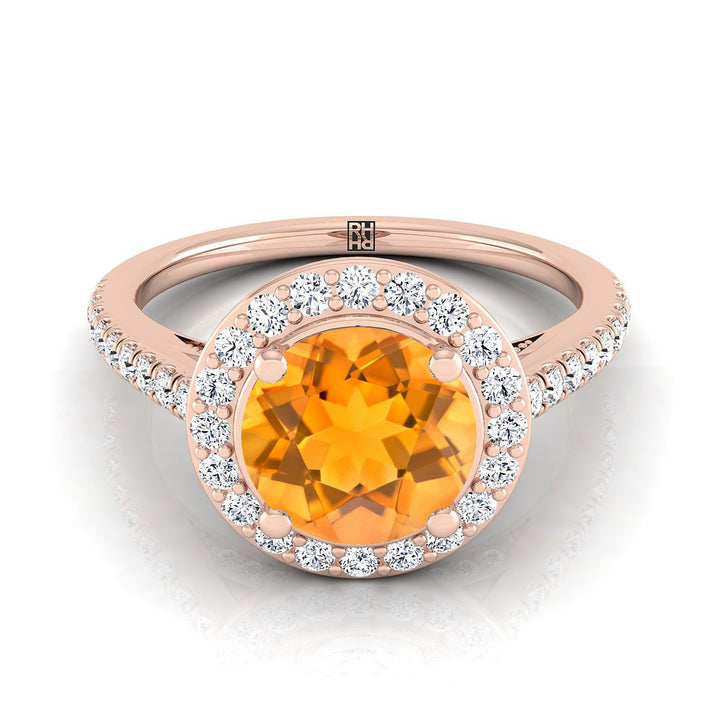 แหวนหมั้นเพชรแกลเลอรีลับแบบฝรั่งเศสประดับซิทรินทรงกลมเจียระไนแบบบริลเลียนต์ 14K โรสโกลด์ - 3/8ctw