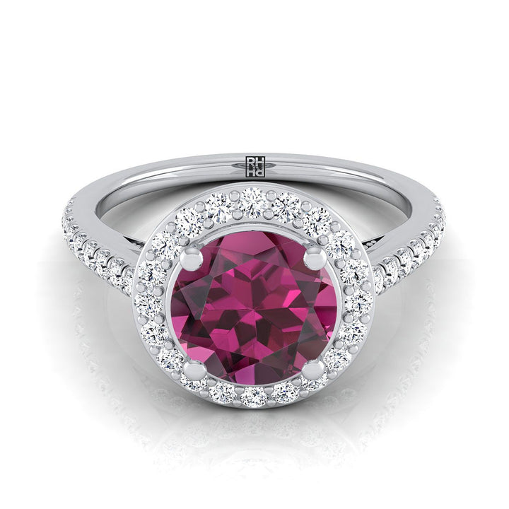 แหวนหมั้นเพชรแกลเลอรีลับแบบฝรั่งเศสประดับการ์เนตทรงกลมเจียระไนแบบบริลเลียนต์ทองคำขาว 18K -3/8ctw