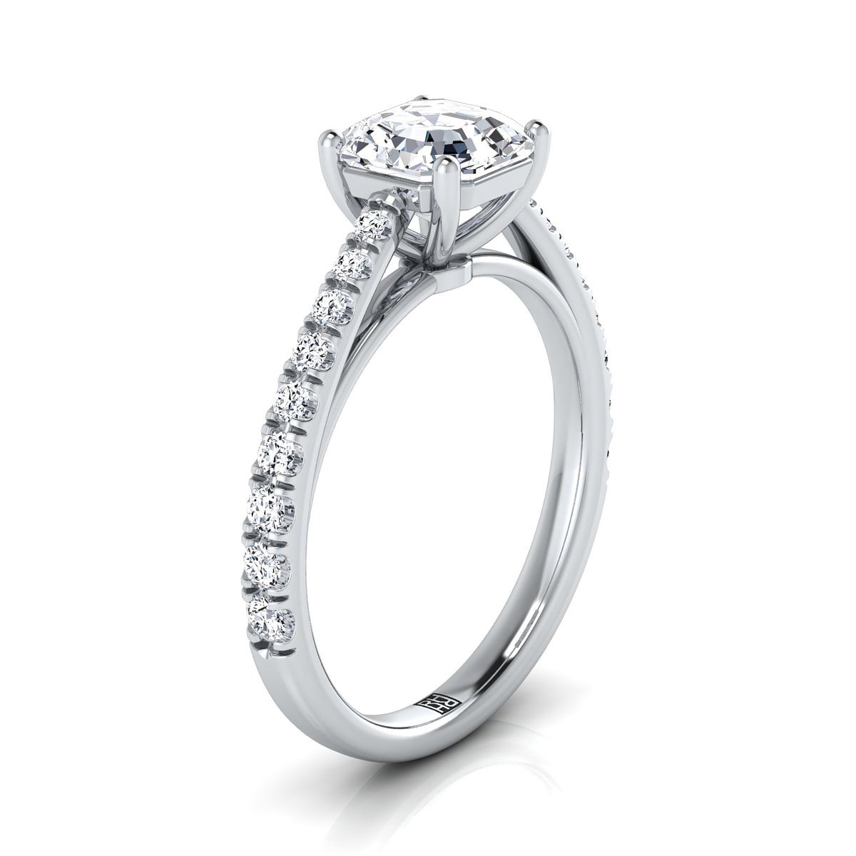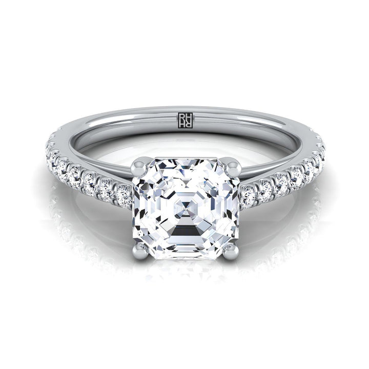 แหวนหมั้นเดี่ยวสไตล์วิหารฝรั่งเศสประดับเพชรแอสเชอร์คัทแพลตตินัมแบบปาเว่ - 1/4ctw