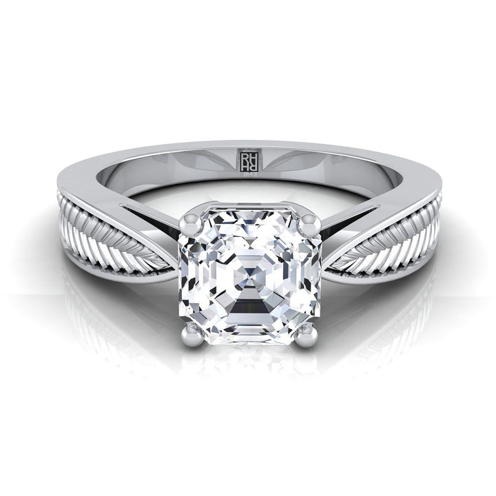 แหวนหมั้นแบบโซลิแทร์บีบลายใบไม้สไตล์วินเทจเจียระไนแอสเชอร์แพลทินัม