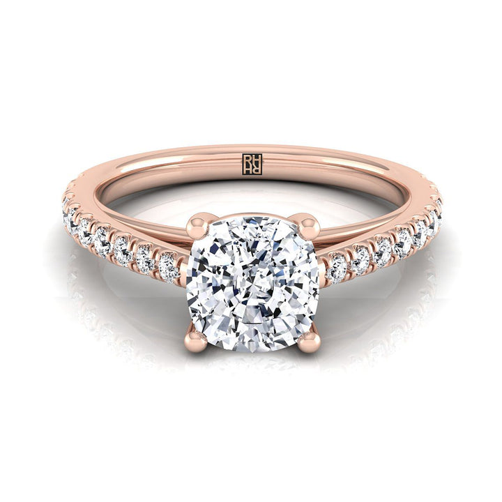 แหวนหมั้นเดี่ยวแบบคาเธดรัลสไตล์ฝรั่งเศสประดับเพชรทรงหมอนทองคำชมพู 14K - 1/4ctw
