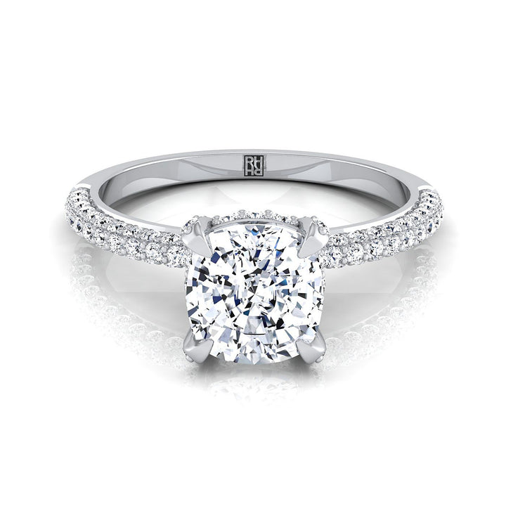 แหวนหมั้นทองคำขาว 18K ทรงหมอน ประดับเพชรที่กรงเล็บและสามแถวพาเว่ - 1/2ctw