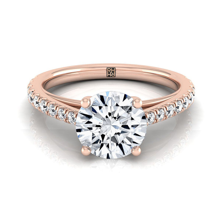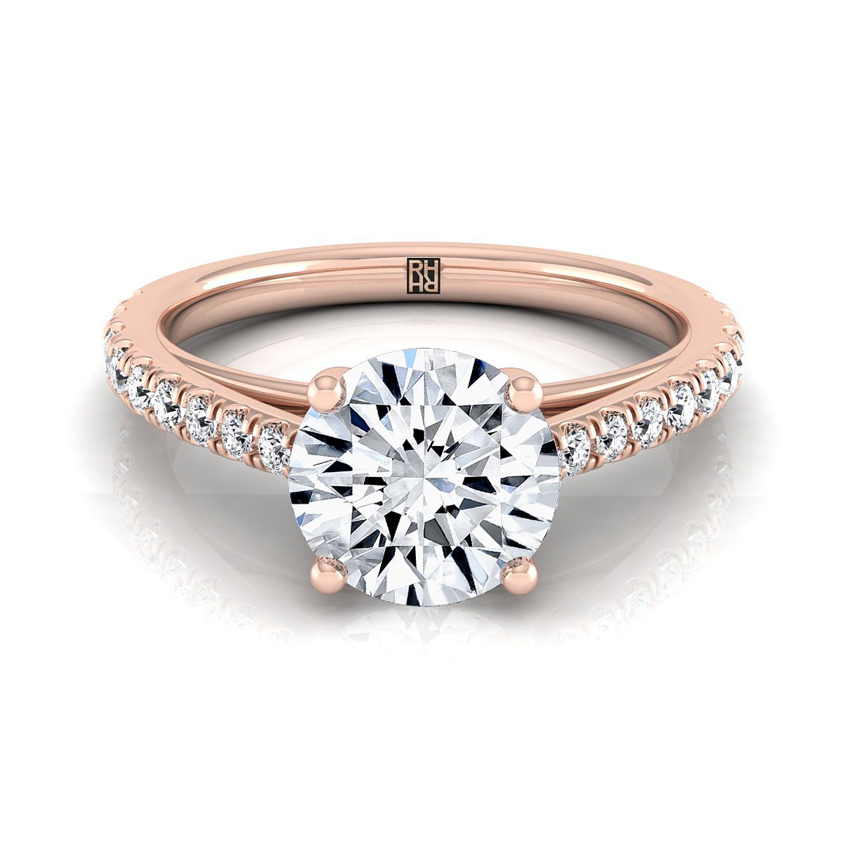 แหวนหมั้นเดี่ยวสไตล์วิหารฝรั่งเศสประดับเพชรทรงกลมเจียระไนแบบบริลเลียนต์ 14K โรสโกลด์ - 1/4 กะรัตรวม