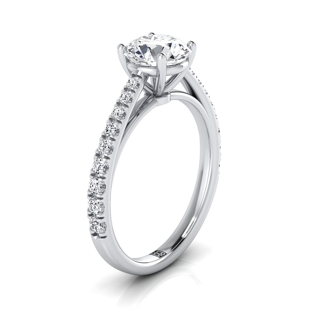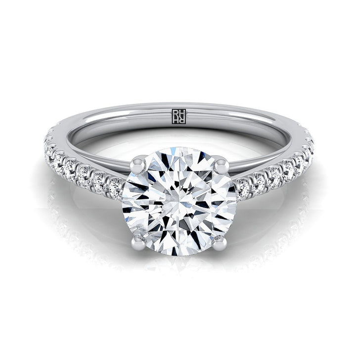 แหวนหมั้นเดี่ยวสไตล์วิหารฝรั่งเศสประดับเพชรทรงกลมเจียระไนแบบบริลเลียนต์ 14K ทองคำขาว - 1/4 กะรัตรวม
