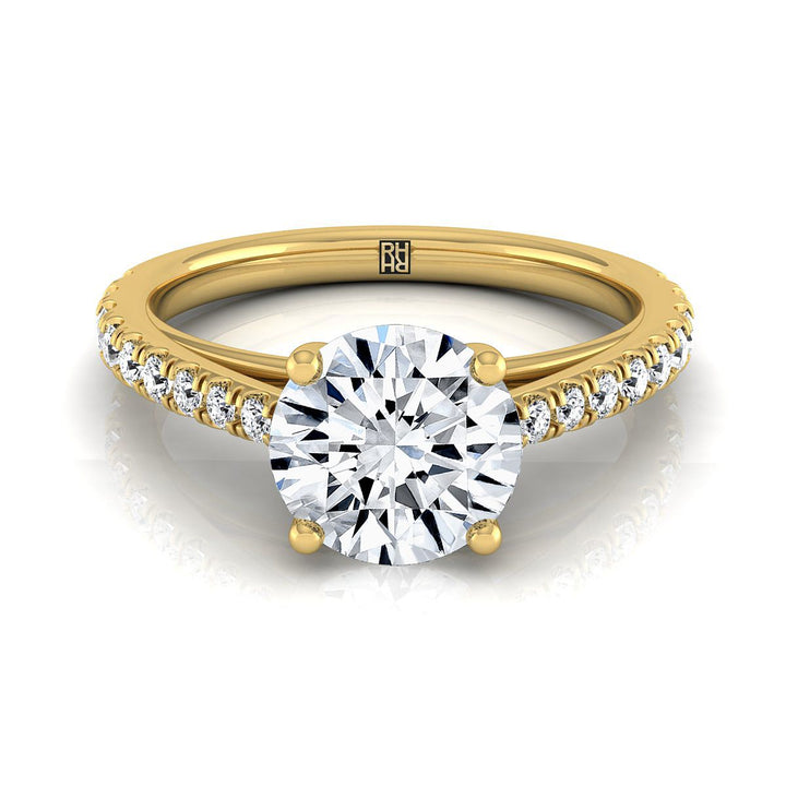 แหวนหมั้นเดี่ยวสไตล์วิหารฝรั่งเศสประดับเพชรทรงกลมเจียระไนแบบบริลเลียนต์ 14K ทองคำเหลือง - 1/4 กะรัตรวม