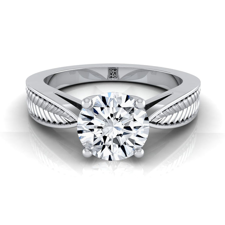 แหวนหมั้นแบบโซลิแทร์ทรงกลมเจียระไนแบบบริลเลียนท์ลายใบไม้สไตล์วินเทจแพลทินัม