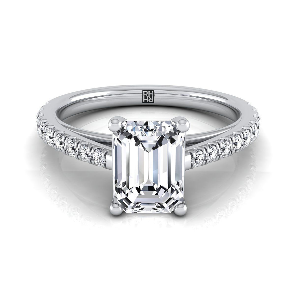 แหวนหมั้นเดี่ยวสไตล์วิหารฝรั่งเศสประดับเพชรทรงมรกตแพลทินัม - 1/4 กะรัตรวม