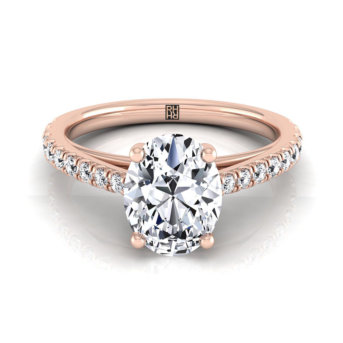 แหวนหมั้นเดี่ยวสไตล์วิหารฝรั่งเศสประดับเพชรรูปวงรีทองกุหลาบ 14K แบบปาเว่ - 1/4 กะรัตรวม