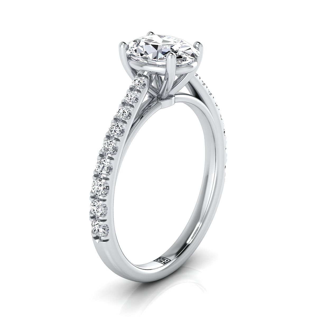 แหวนหมั้นเดี่ยวสไตล์วิหารฝรั่งเศสประดับเพชรวางเรียงแบบเพฟรูปวงรีแพลทินัม - 1/4ctw