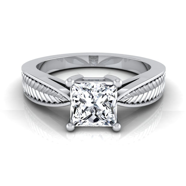 แหวนหมั้นแบบโซลิแทร์ทรงเจ้าหญิงแพลตตินัม ลวดลายใบไม้สไตล์วินเทจ