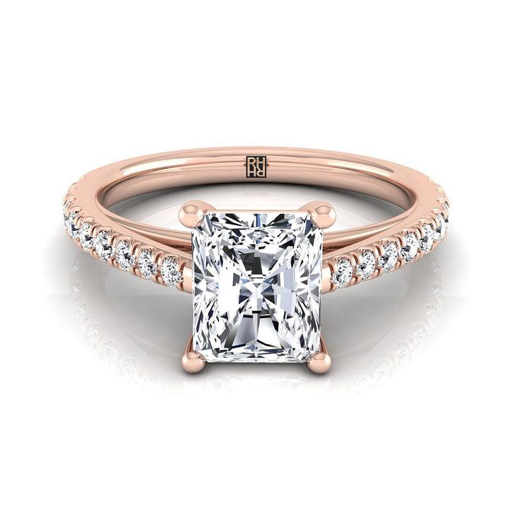 แหวนหมั้นเดี่ยวสไตล์วิหารฝรั่งเศสประดับเพชรกลางทรงเรเดียนท์ 14K ทองกุหลาบ 1/4 กะรัต