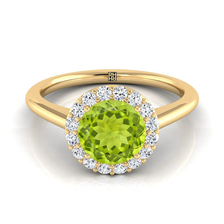 แหวนหมั้นเพชรฮาโลแบบหนามเตยร่วมประดับเพอริดอตทรงกลมเจียระไนแบบบริลเลียนท์ทองคำเหลือง 14K - 1/5 กะรัตรวม