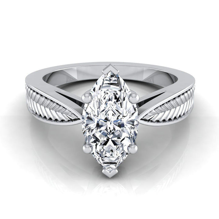แหวนหมั้นแบบโซลิแทร์บีบใบลายวินเทจสไตล์มาร์คีสแพลทินัม