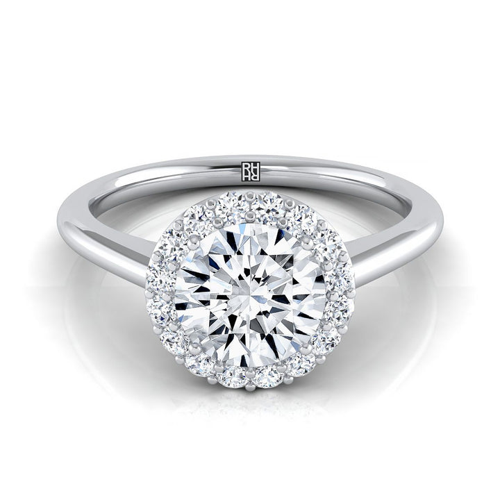 แหวนหมั้นเพชรทรงกลมเจียระไนแบบ Brilliant สีทองคำขาว 14K แบบหนามเตยร่วม พร้อมฮาโล - 1/5 กะรัตรวม