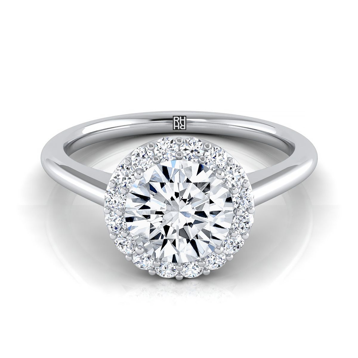 แหวนหมั้น Halo Pave สไตล์คลาสสิกนี้แสดงให้เห็นถึงเพชรเจียระไนแบบ Brilliant Cut (h-i/vs 0.22 Ctw) ที่ถูกจัดวางอย่างสวยงามในตัวเรือนทองคำขาว 18k แบบคลาสสิก
