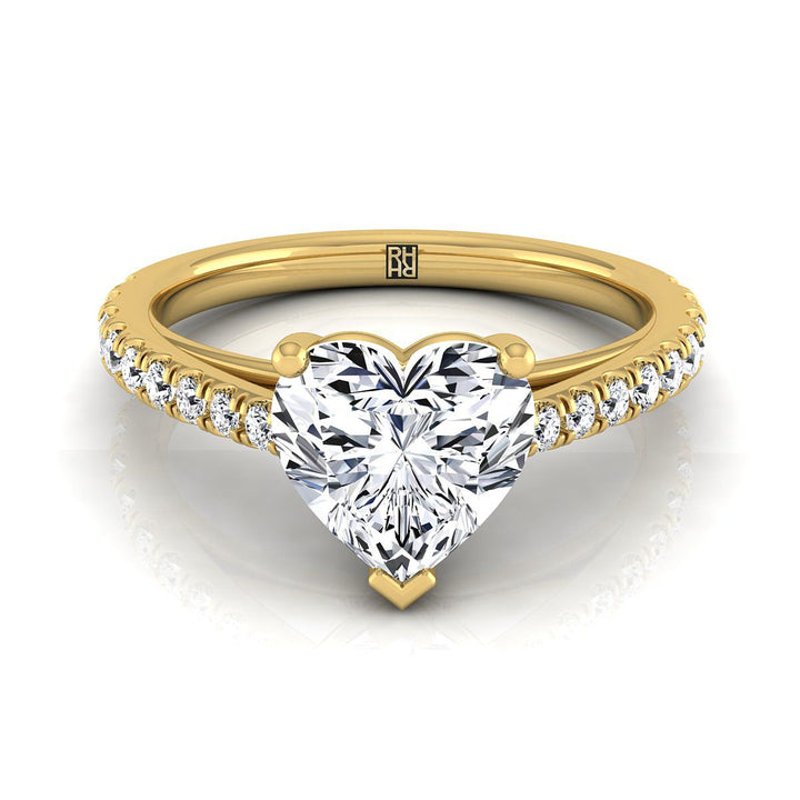 แหวนหมั้นเดี่ยวสไตล์วิหารฝรั่งเศสประดับเพชรเม็ดกลางรูปหัวใจทองคำเหลือง 14K - 1/4 กะรัตรวม
