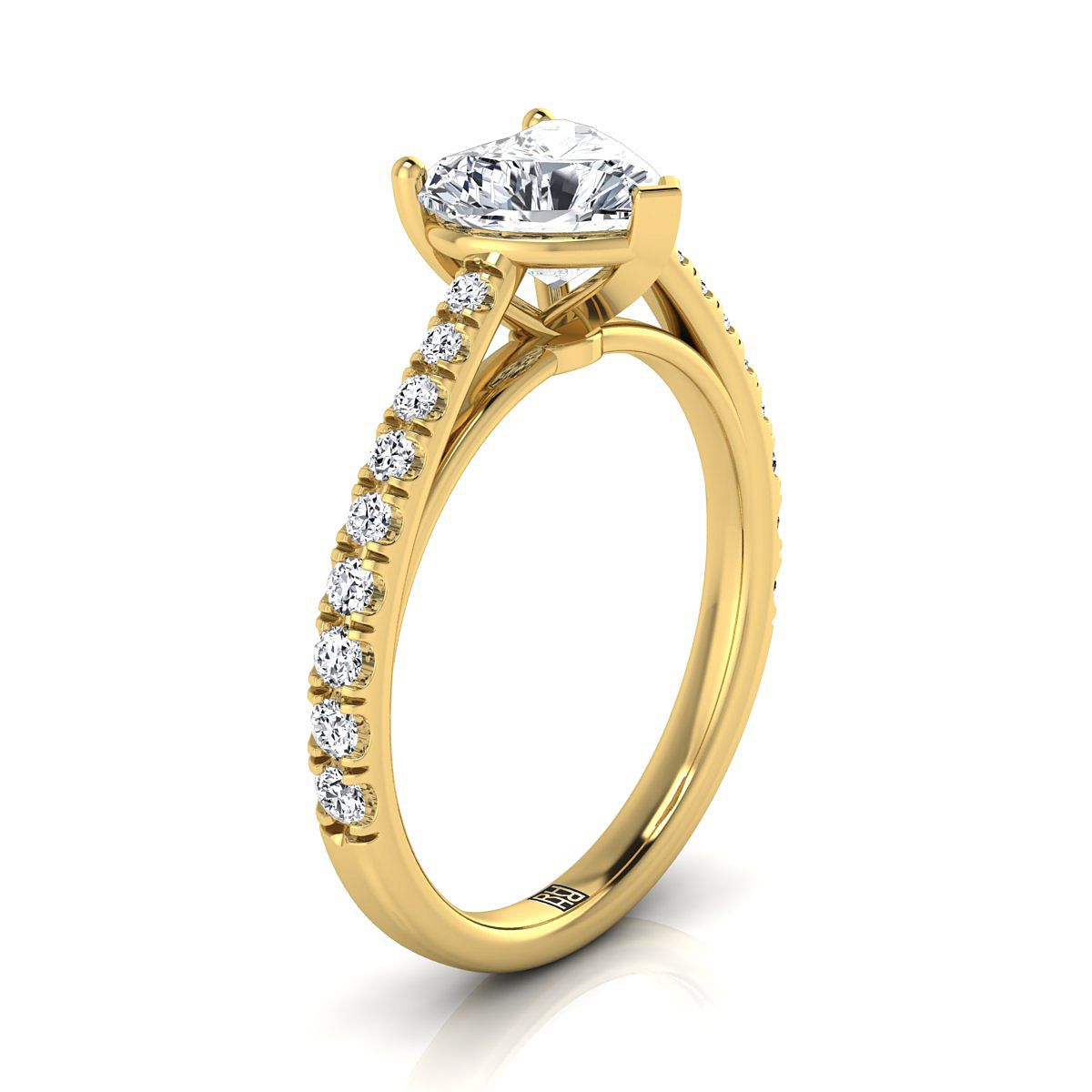 แหวนหมั้นเดี่ยวสไตล์วิหารฝรั่งเศสประดับเพชรทรงหัวใจตรงกลางทองคำเหลือง 18K - 1/4ctw