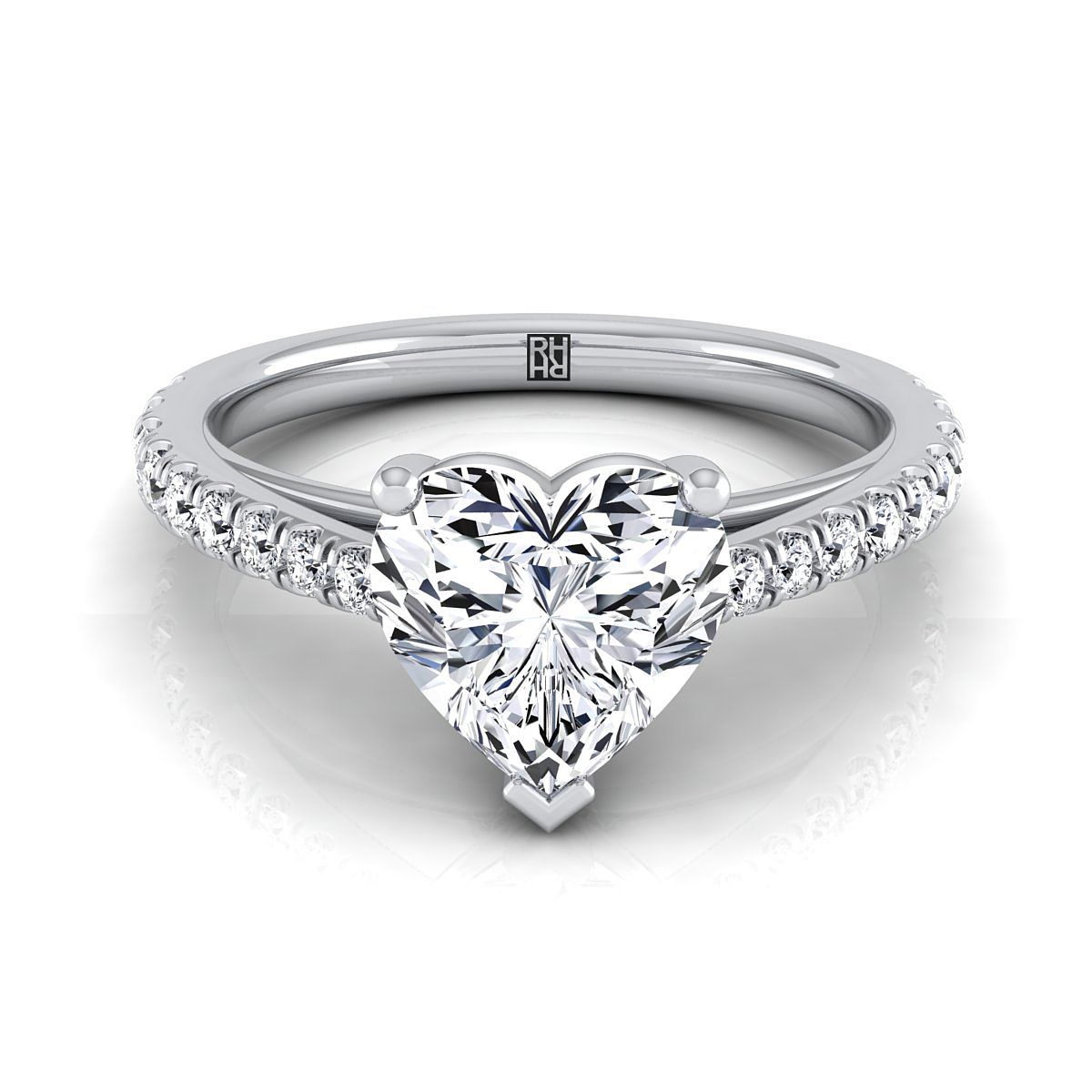แหวนหมั้นเดี่ยวสไตล์วิหารฝรั่งเศสประดับเพชรเม็ดกลางรูปหัวใจแพลตตินัม - 1/4ctw