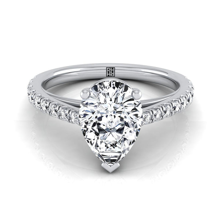 แหวนหมั้นเดี่ยวสไตล์วิหารฝรั่งเศสประดับเพชรทรงลูกแพร์กลางแพลทินัม - น้ำหนักรวม 1/4 กะรัต