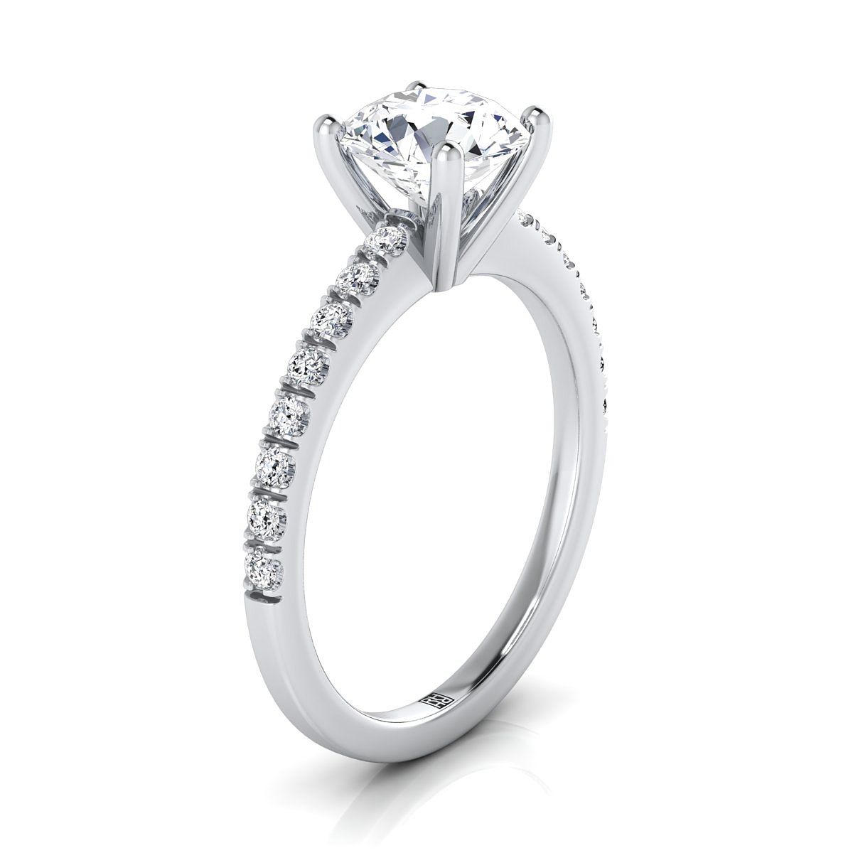 แถลงการณ์สไตล์ที่สง่างาม แหวนหมั้นสี่ก้านขนาดเล็กนี้แสดงให้เห็นเพชรเจียระไนแบบ Brilliant Cut (h-i/vs 0.20ctw) ที่ตั้งอย่างสวยงามในทองคำขาว 14 กะรัต