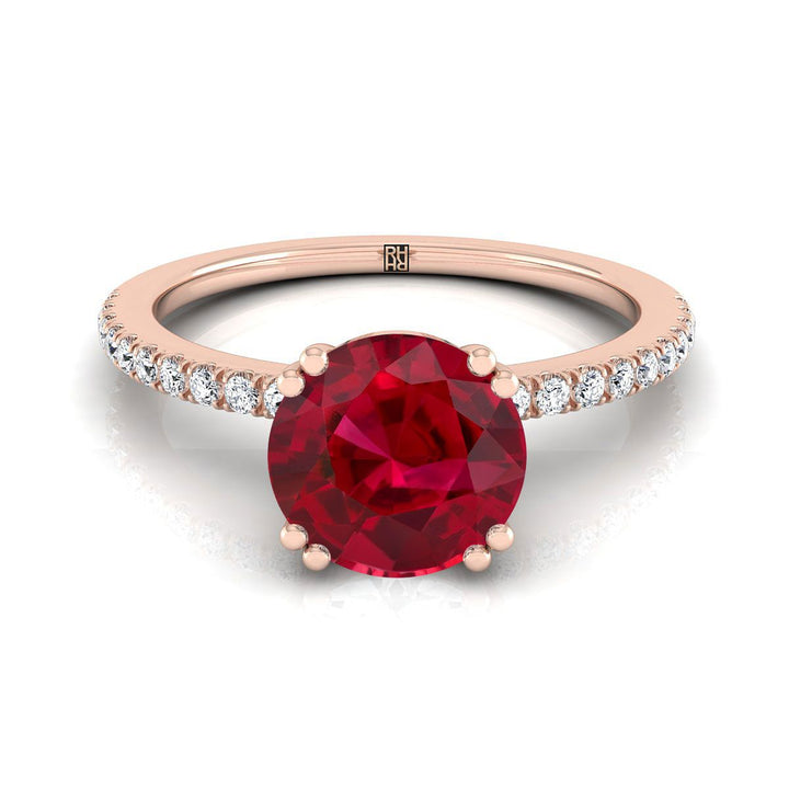 แหวนหมั้นเพชรแบบหนามคู่ฝรั่งเศสเรียบง่ายประดับทับทิมทรงกลมเจียระไนแบบ Brilliant สีโรสโกลด์ 14K - 1/6ctw