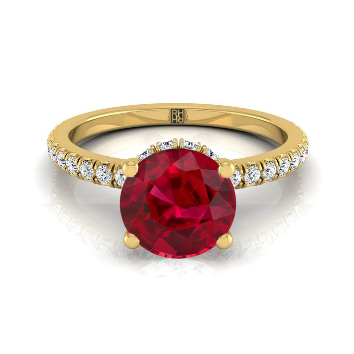 แหวนหมั้นเดี่ยวฝรั่งเศสประดับเพชรล้อมลับแบบวงกลมเจียระไนแบบบริลเลียนต์สีเหลืองทอง 14K ประดับทับทิม 1/3 กะรัต