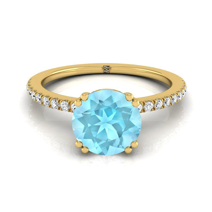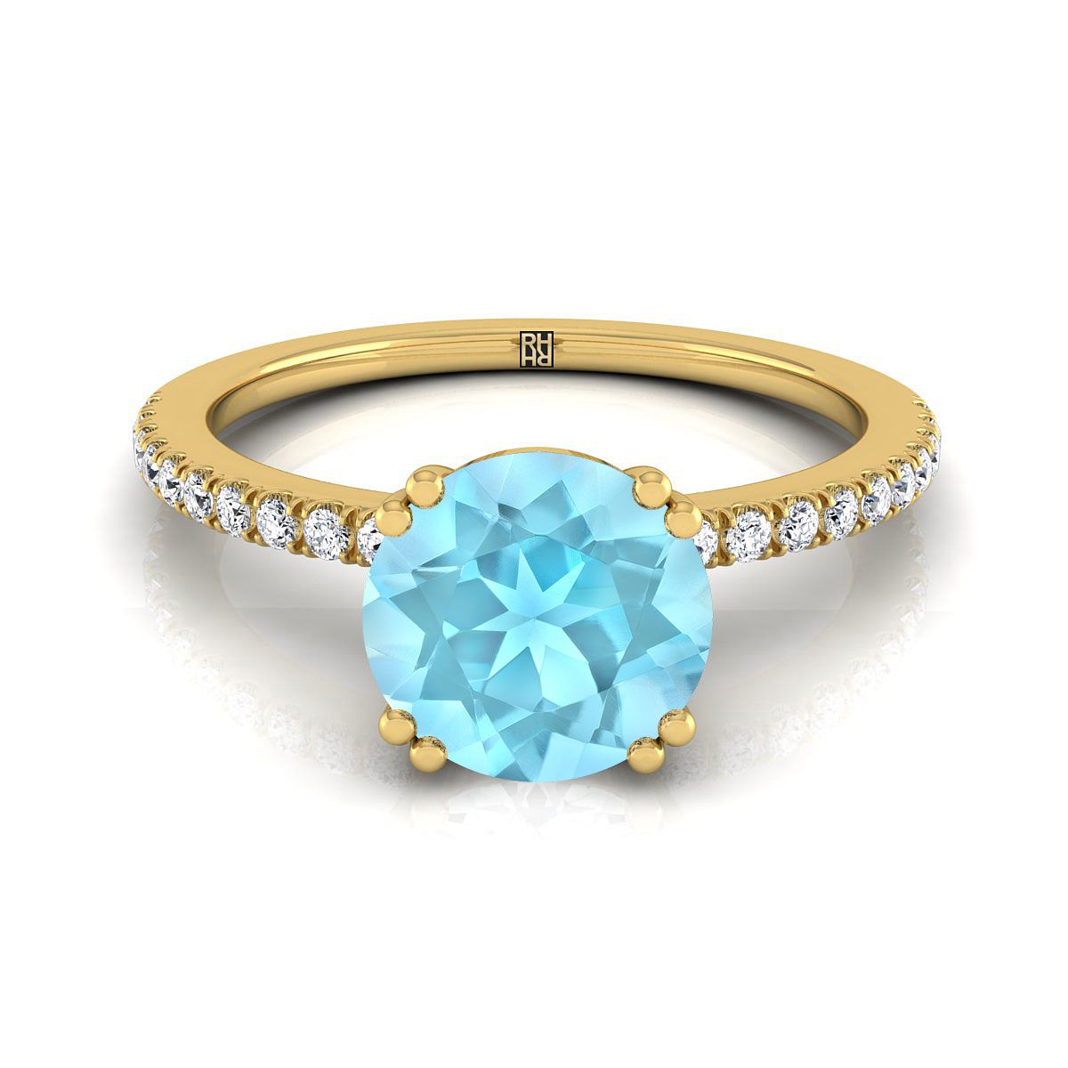 แหวนหมั้นเพชรหนีบคู่แบบฝรั่งเศสเรียบง่ายประดับอะความารีนทรงกลมเจียระไนแบบบริลเลียนต์ทองคำเหลือง 14K - 1/6 กะรัตรวม