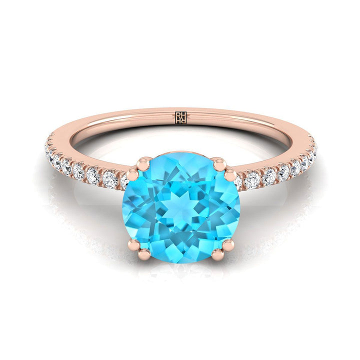 แหวนหมั้นเพชรแบบหนามคู่ฝรั่งเศสเรียบง่ายประดับทับทิมสวิสสีน้ำเงินทรงกลมเจียระไนแบบบริลเลียนต์ทองกุหลาบ 14K - 1/6ctw
