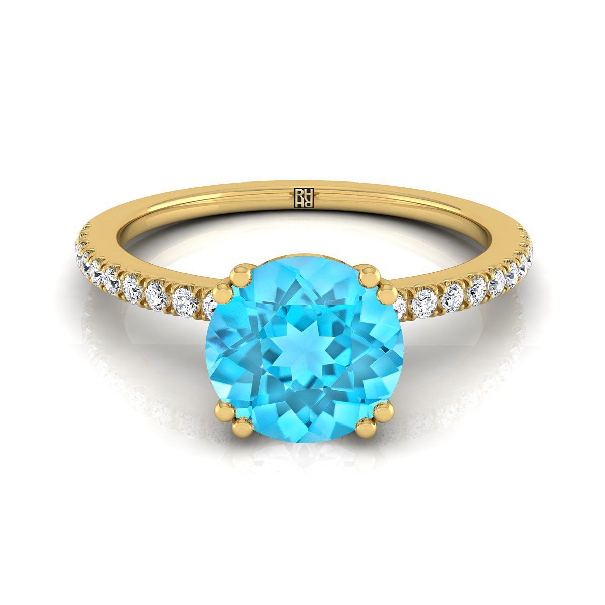 แหวนหมั้นเพชรแบบหนีบคู่ฝรั่งเศสเรียบง่ายประดับทับทิมสวิสสีน้ำเงินทรงกลมเจียระไนแบบบริลเลียนต์ทองคำเหลือง 14K - 1/6ctw