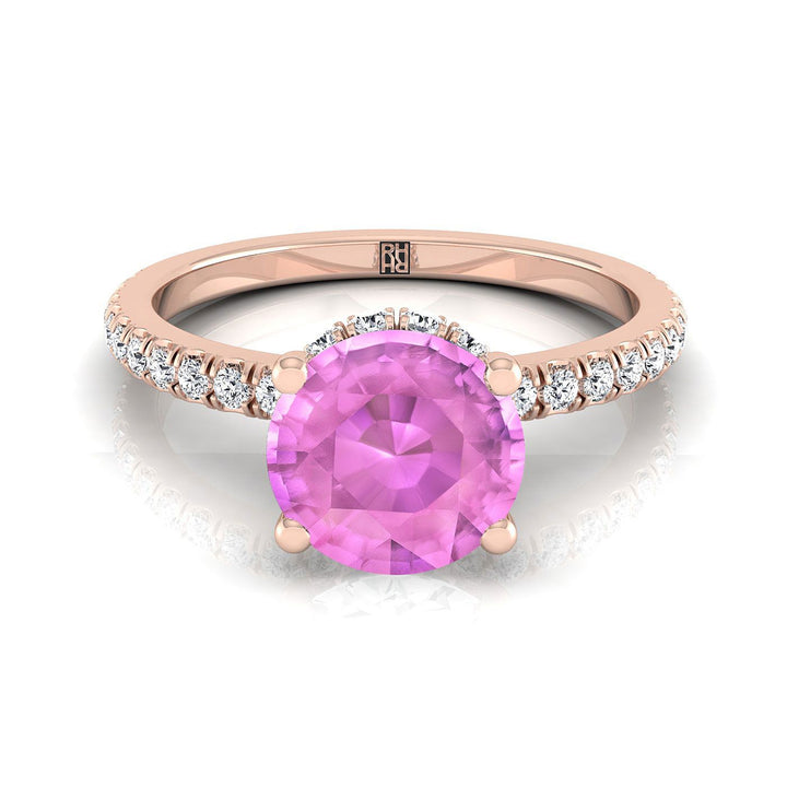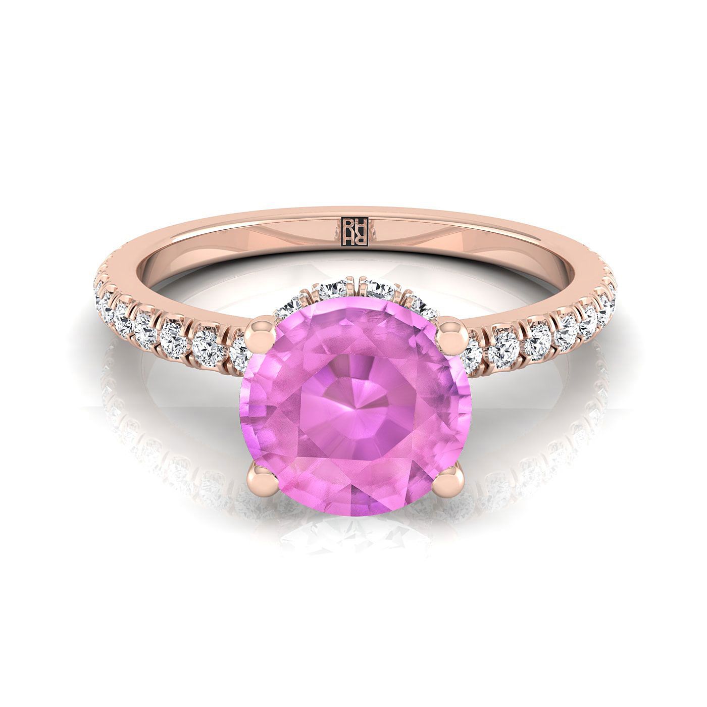 แหวนหมั้นเดี่ยวฝรั่งเศสประดับเพชรล้อมลับแบบวงกลมเจียระไนแบบบริลเลียนท์สีชมพูแซฟไฟร์ 14K โรสโกลด์ - 1/3 กะรัตรวม
