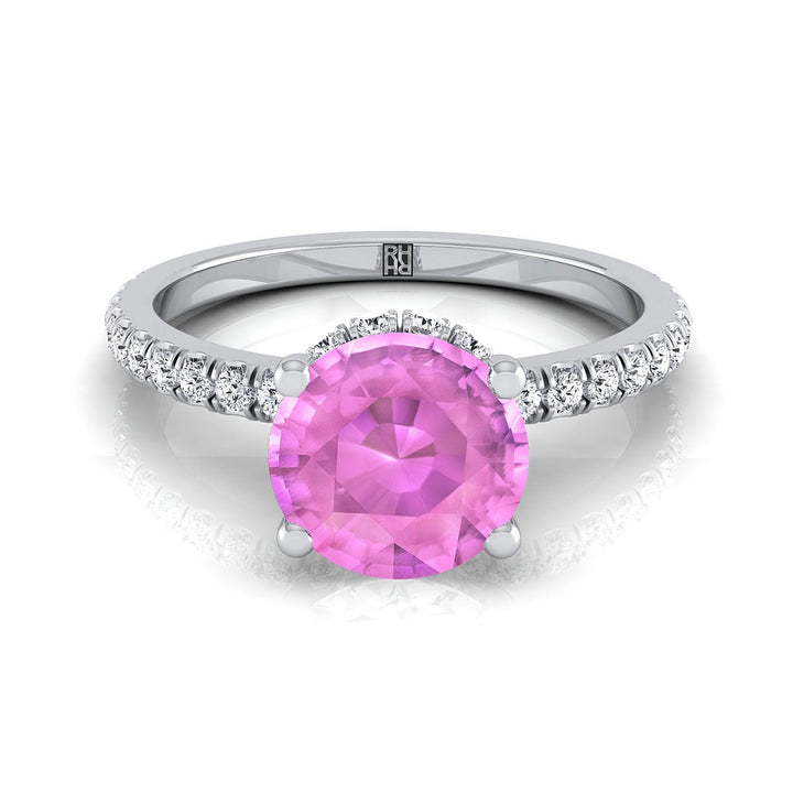 แหวนหมั้นเดี่ยวฝรั่งเศสประดับเพชรล้อมลับแบบวงแหวนล้อมเพชรสีชมพูแซฟไฟร์ทรงกลมเจียระไนแบบบริลเลียนท์ทองคำขาว 14K - 1/3 กะรัตรวม