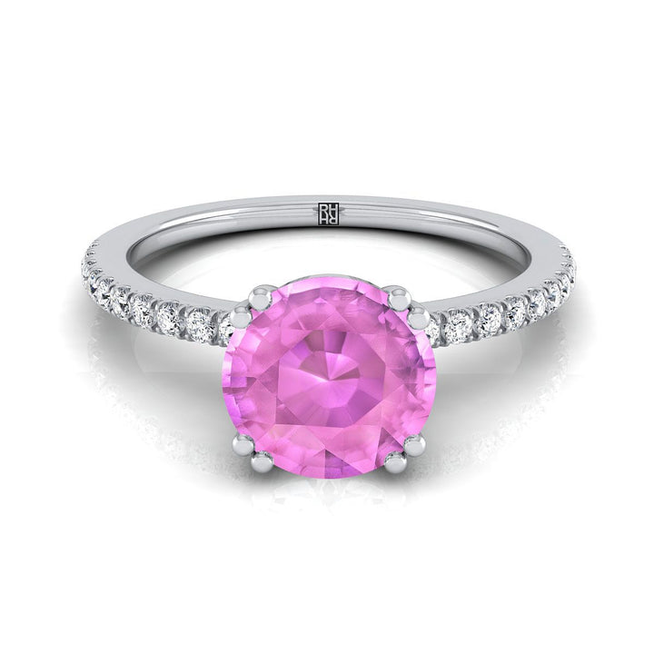 แหวนหมั้นเพชรแบบหนีบคู่ฝรั่งเศสเรียบง่ายประดับแซฟไฟร์สีชมพูทรงกลมเจียระไนแบบบริลเลียนต์ทองคำขาว 18K - 1/6ctw