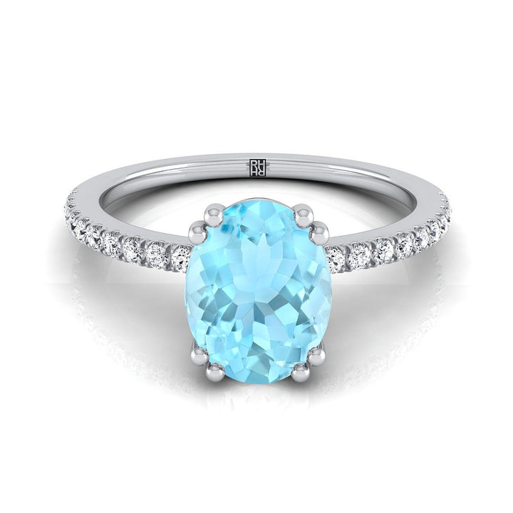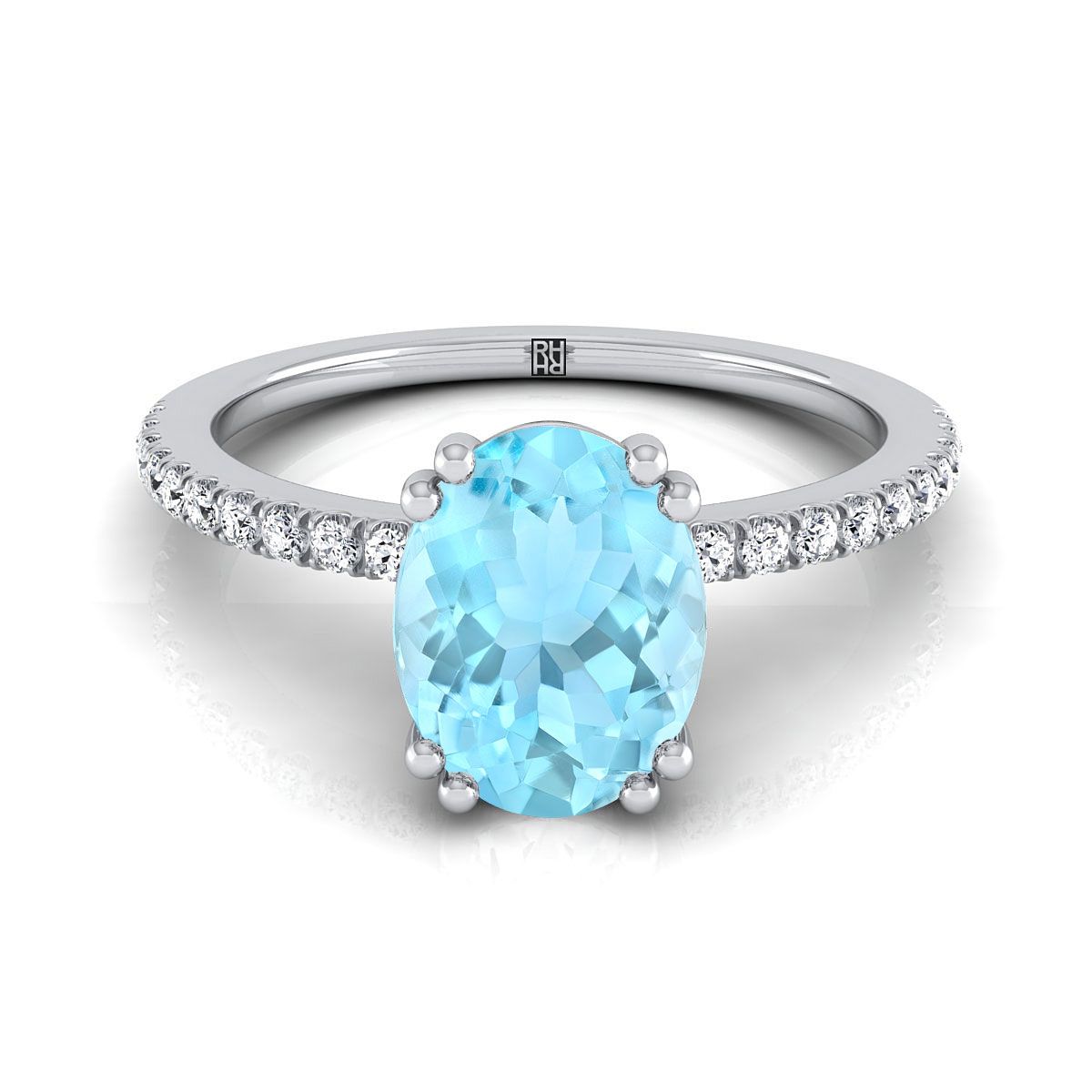 แหวนหมั้นเพชรแบบหนีบคู่ฝรั่งเศสเรียบง่ายรูปไข่อะความารีนแพลทินัม - 1/6ctw