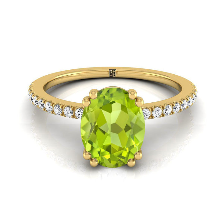 แหวนหมั้นเพชรแบบหนีบคู่ฝรั่งเศสเรียบง่ายประดับเพอริดอตรูปวงรีทองคำเหลือง 18K - 1/6ctw