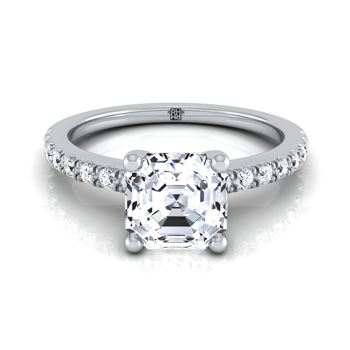 แหวนหมั้นเพชรแบบเรียบง่าย ประดับเพชรแบบแอสเชอร์คัต 14K ทองคำขาว ฝังเพชรแบบพาเว่ น้ำหนักรวม 1/5 กะรัต