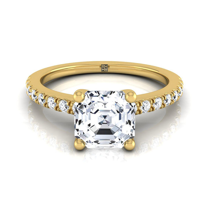 แหวนหมั้นเพชรแบบเรียบง่าย ตัดแบบแอสเชอร์ ทองคำเหลือง 14K ประดับเพชรแบบปาเว่เส้นตรง - 1/5 กะรัตรวม