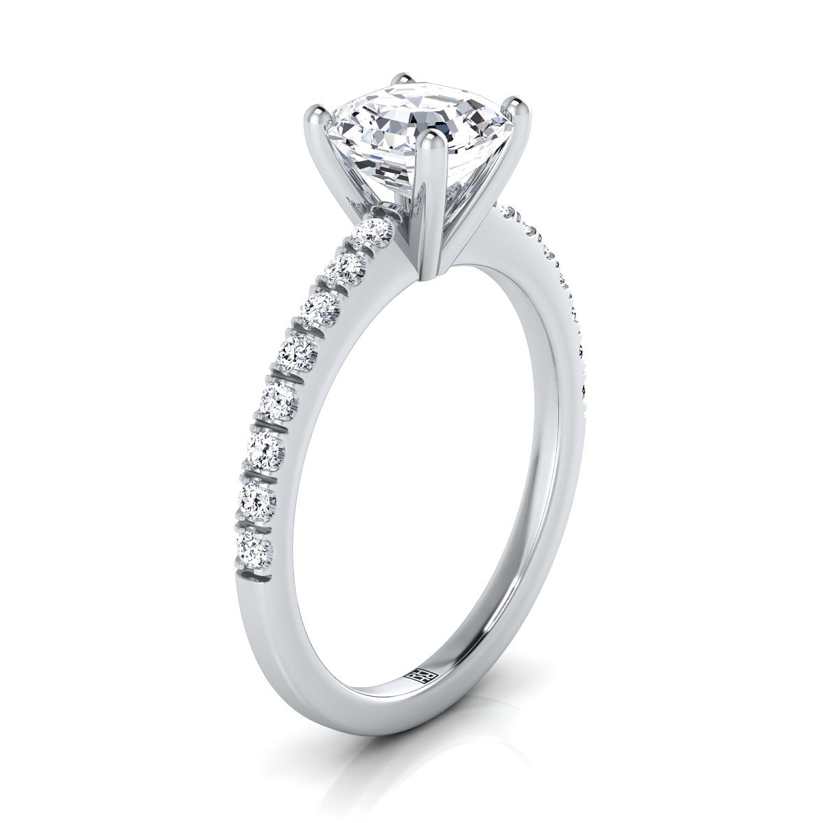 แหวนหมั้นเพชรแบบเรียบง่าย ประดับเพชรแบบแอสเชอร์คัต 18K ทองคำขาว ประดับเพชรแบบพาเว่ - 1/5 กะรัตรวม