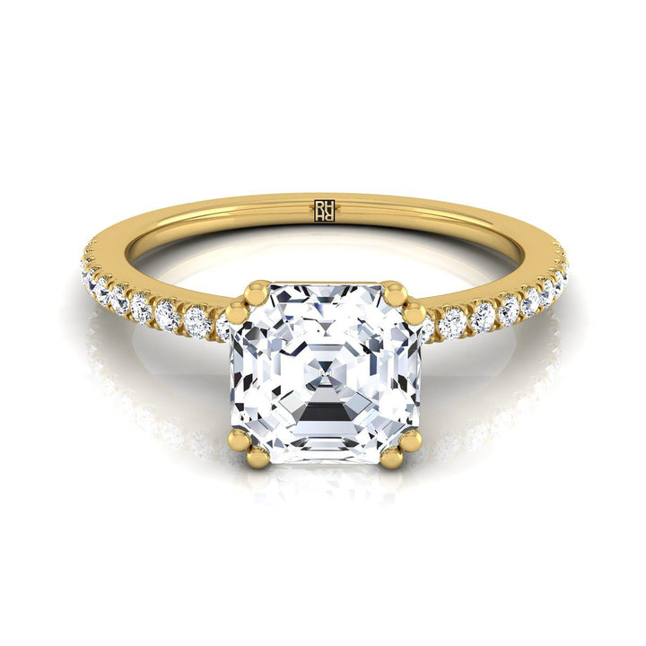 แหวนหมั้นเพชรทรงแอสเชอร์ ตัดเพชรแบบฝรั่งเศสเรียบง่าย ประดับด้วยกรงเล็บคู่ ทำจากทองคำเหลือง 18K น้ำหนักเพชรรวม 1/6 กะรัต