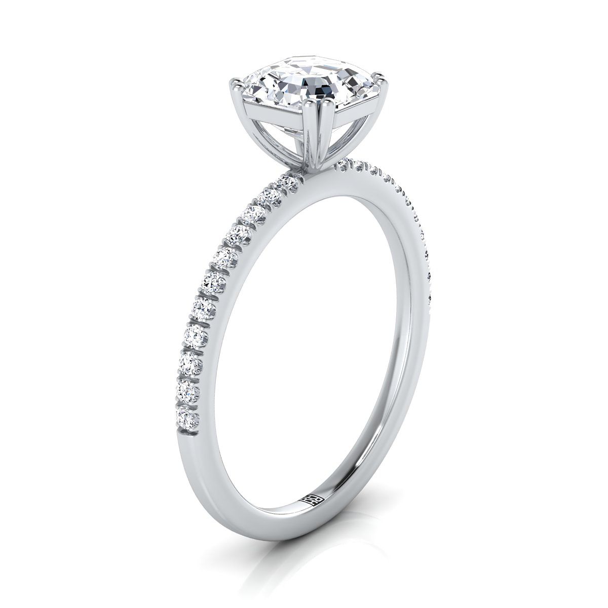 แหวนหมั้นเพชรแพลทินัมทรงแอสเชอร์ ตกแต่งด้วยเพฟฝรั่งเศสแบบเรียบง่ายและหนามคู่แบบหนีบ - 1/6 กะรัตรวม