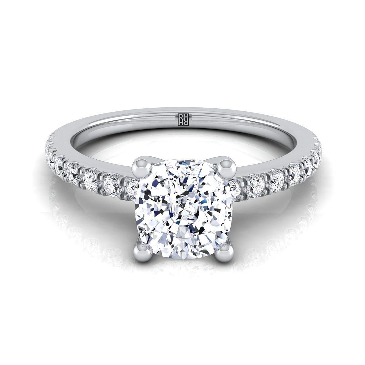 แหวนหมั้นเพชรแบบเรียบง่ายทรงหมอนทองคำขาว 14K ประดับเพชรแบบปาเว่เส้นตรง - 1/5 กะรัตรวม