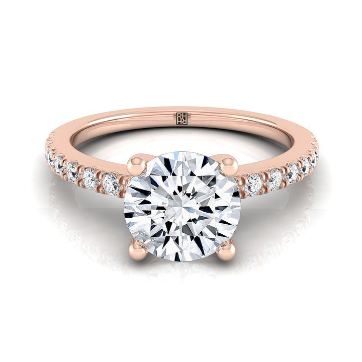 แหวนหมั้นเพชรแบบเรียบง่ายเส้นตรงทรงกลมเจียระไนแบบ Brilliant ทองกุหลาบ 14K ประดับเพชรแบบ Pave - 1/5ctw