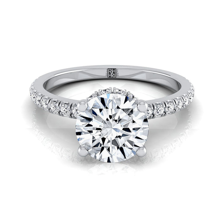 แหวนหมั้นเดี่ยวฝรั่งเศสประดับเพชรทรงกลมเจียระไนแบบบริลเลียนต์ล้อมด้วยเพชรลับแบบฮาโลว์ทองคำขาว 14K - 1/3 กะรัตรวม