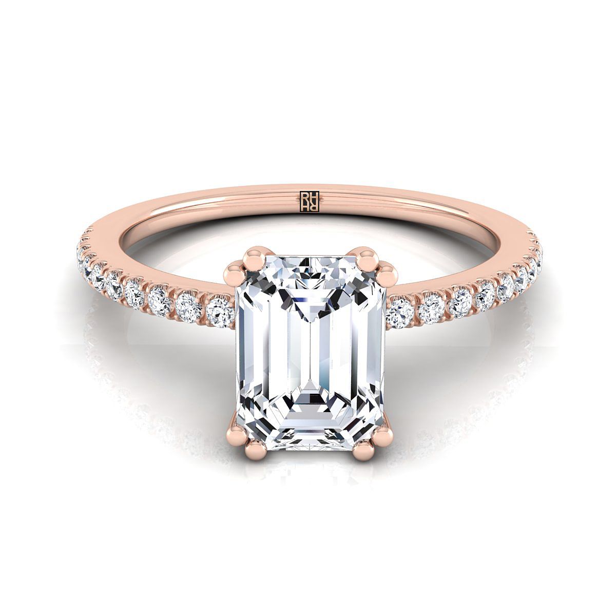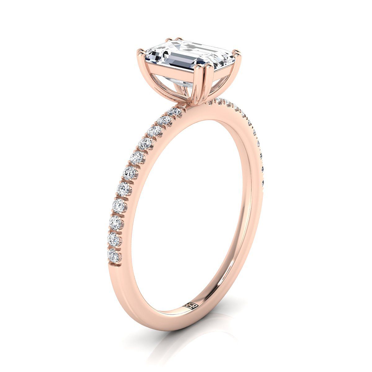 แหวนหมั้นทองคำชมพู 14K ประดับเพชรแบบเรียบง่าย ฝรั่งเศส ปูด้วยเพชรแบบสองกรงเล็บ -1/6ctw