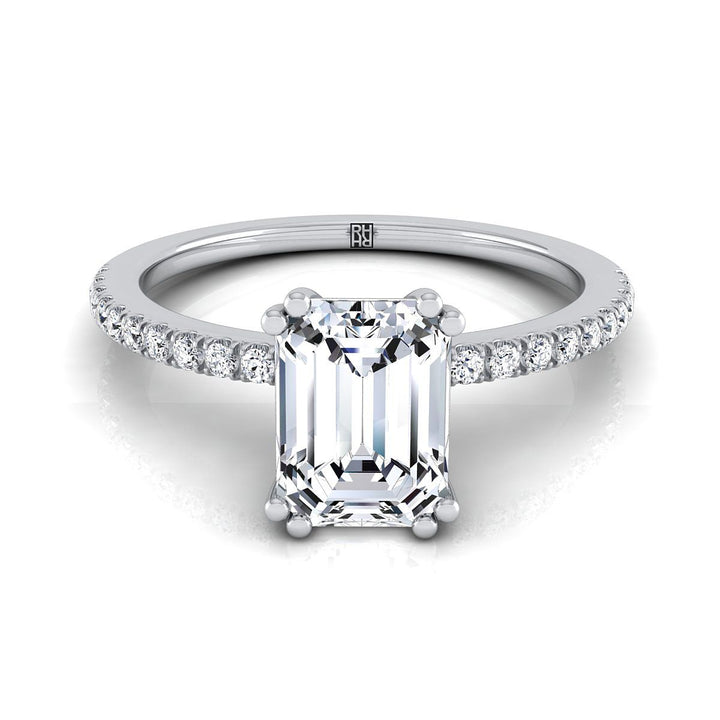 แหวนหมั้นทองคำขาว 14K ประดับเพชรแบบฝรั่งเศสเรียบง่าย ฝังเพชรแบบปาเว่ กรงหนีบคู่ขนาด 1/6 กะรัต