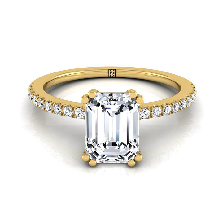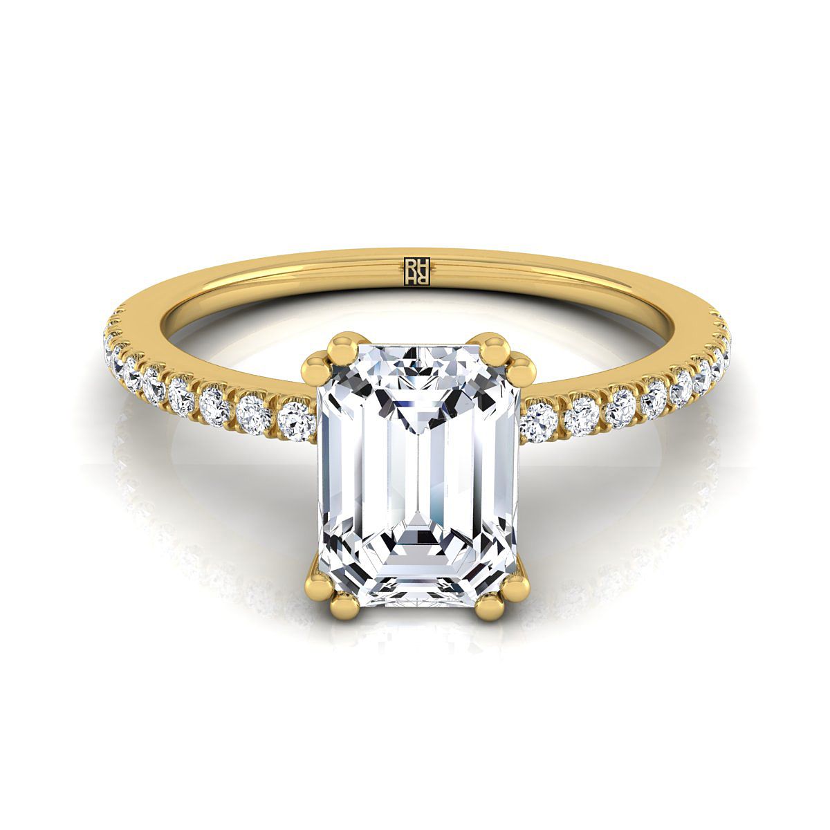 แหวนหมั้นทองคำเหลือง 14K ประดับเพชรแบบฝรั่งเศสเรียบง่าย ฝังเพชรแบบปาเว่ กรงหนีบคู่แบบกรงกรง - 1/6 กะรัตรวม