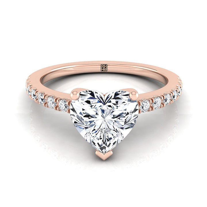 แถลงการณ์ที่สง่างามของสไตล์ แหวนหมั้นรูปหัวใจแบบแยกขาเล็กนี้มีเพชรที่ตัดอย่างสวยงาม (h-i/vs 0.20ctw) ตั้งอยู่ในทองคำกุหลาบ 14k อย่างสวยงาม