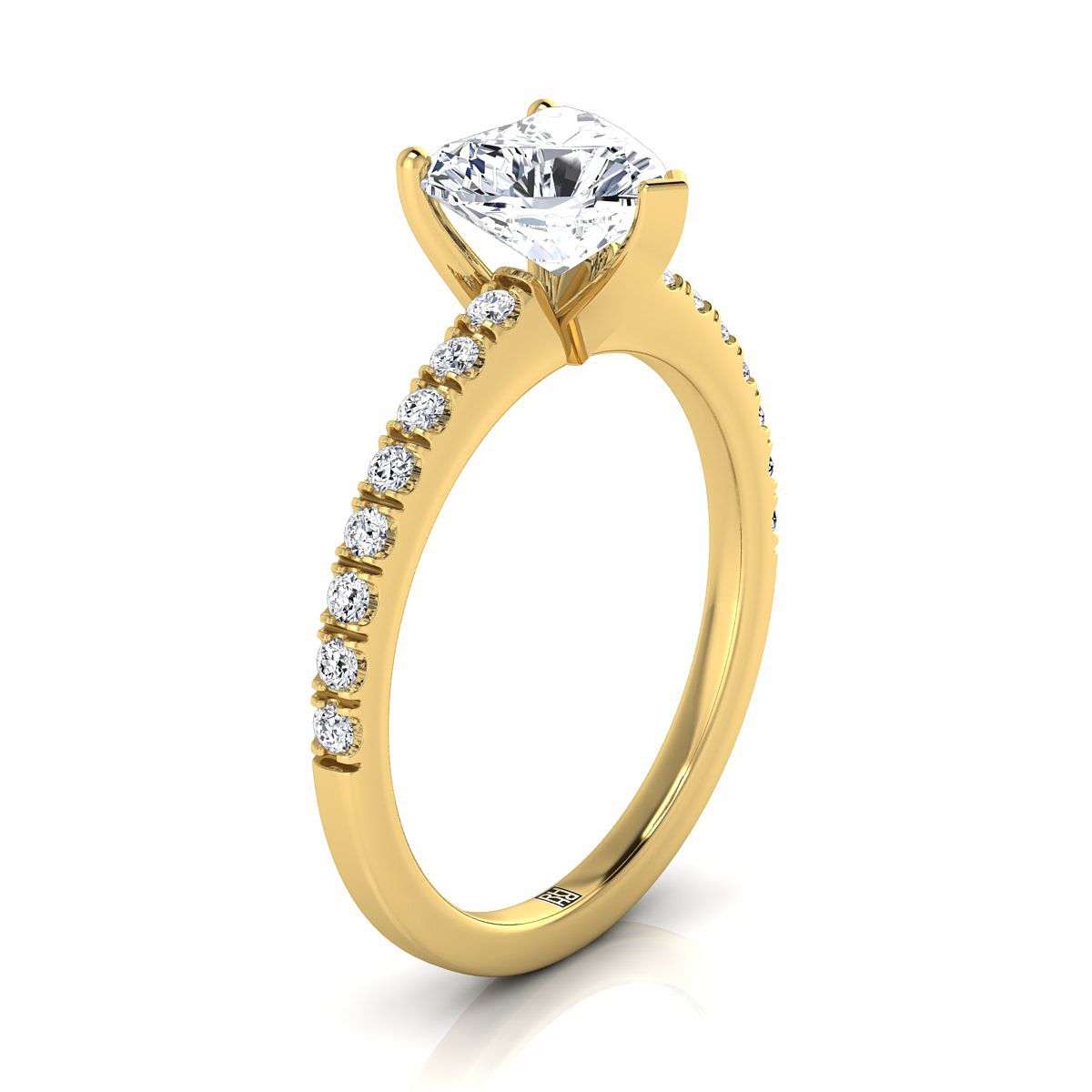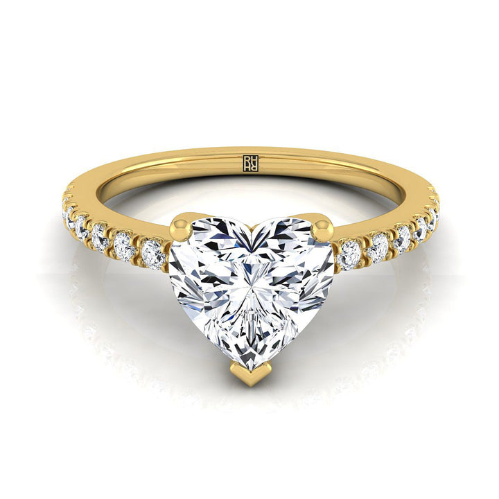 แหวนหมั้นเพชรแบบเรียบง่ายรูปหัวใจตรงกลางทองคำเหลือง 14K ประดับเพชรแบบปาเว่ 1/5 กะรัต