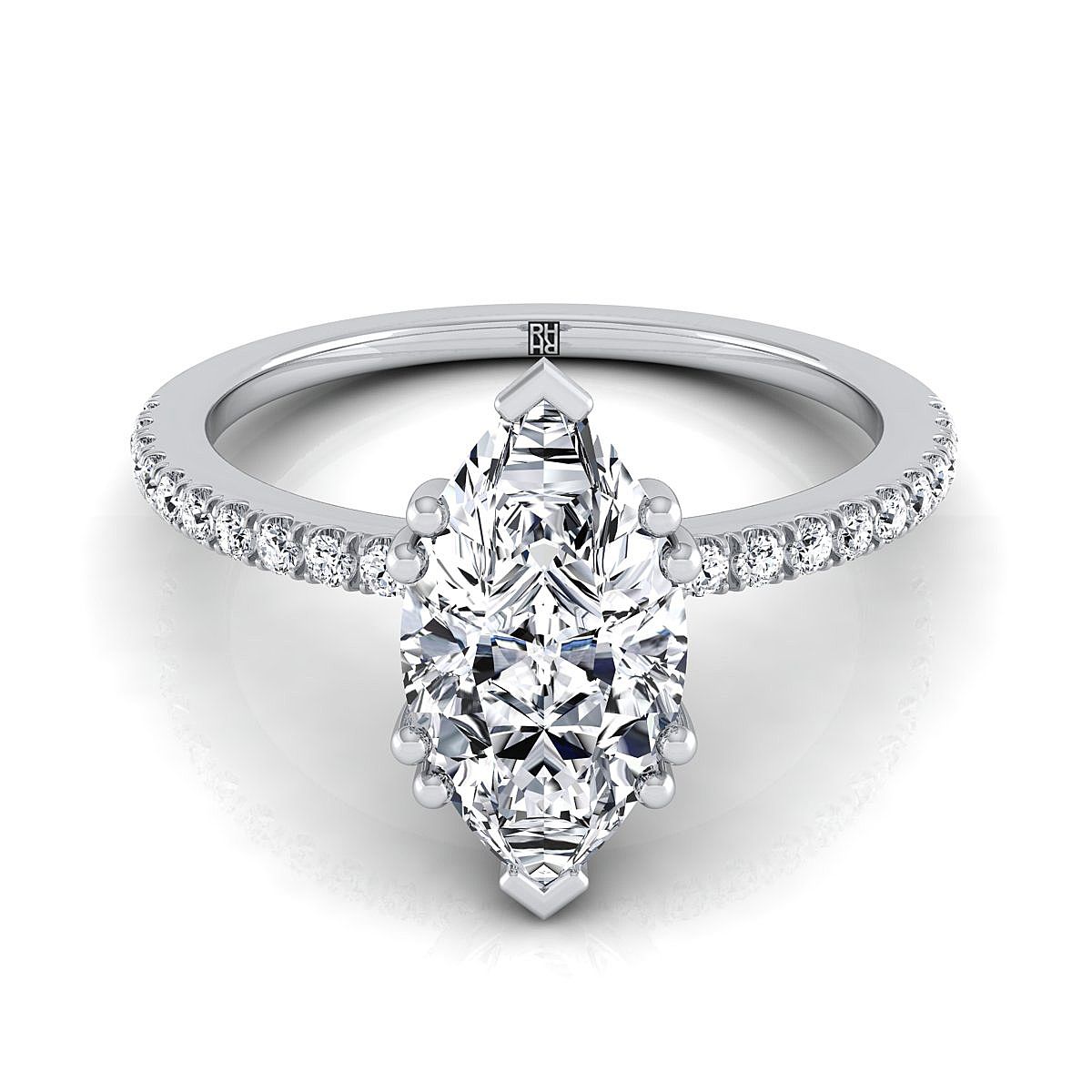 แหวนหมั้นทองคำขาว 14K ทรงมาร์คีส์ เพชรฝรั่งเศสแบบเรียบ ประดับด้วยหนามคู่แบบฝัง - 1/6 กะรัตรวม