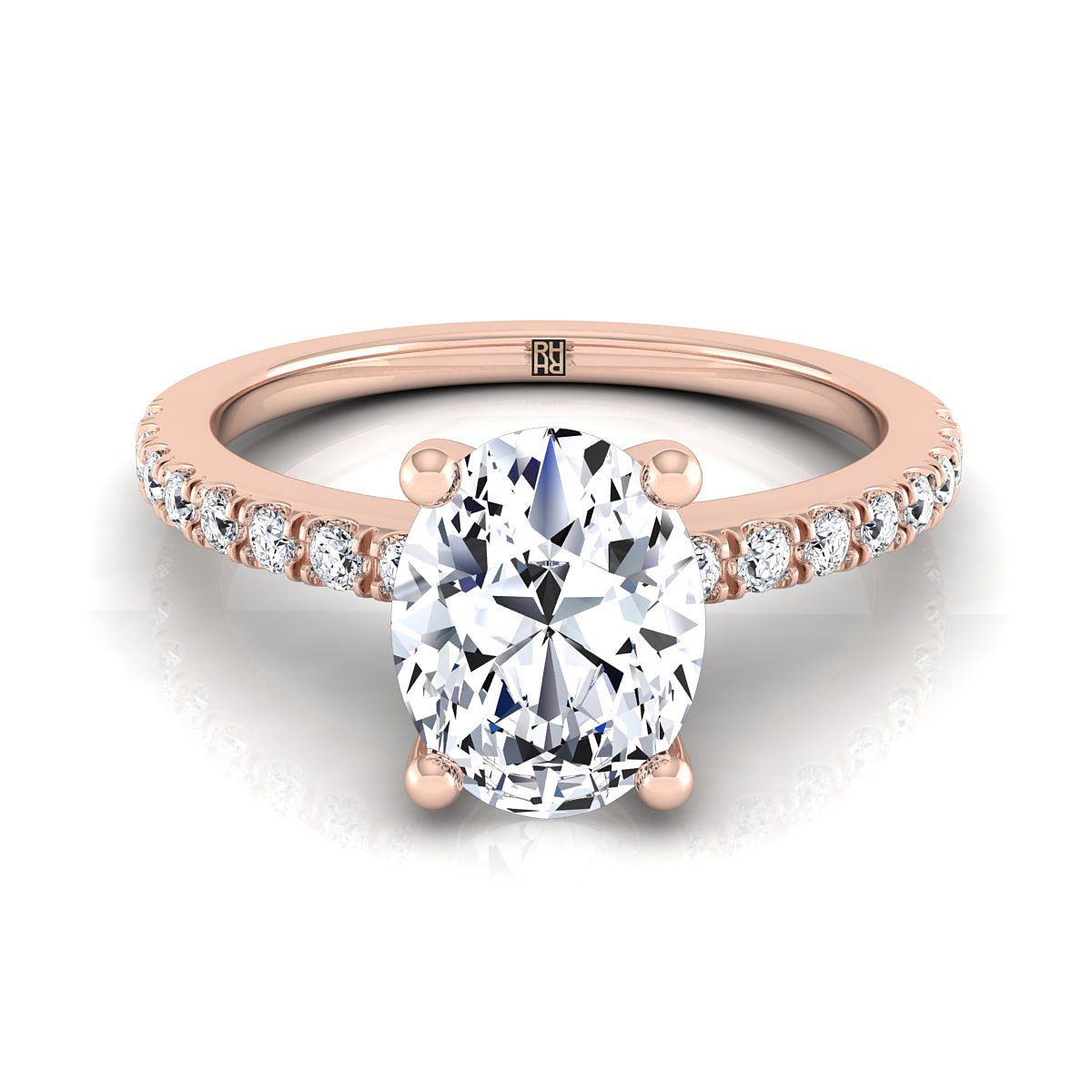 แหวนหมั้นเพชรแบบเรียบเส้นตรงรูปไข่ทองกุหลาบ 14K ประดับเพชร 1/5 กะรัต